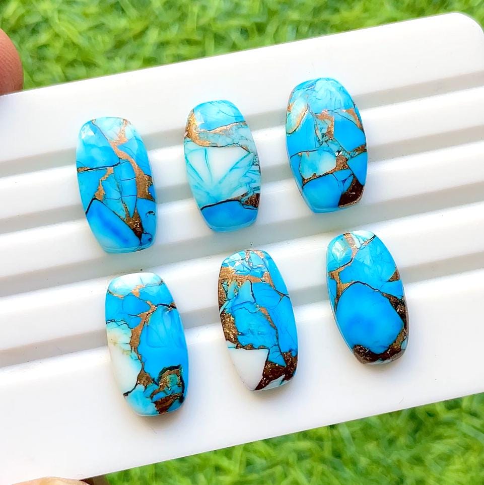 NEW Blue Oyster Copper Turquoise 20x10 MM Cushion Shape Calibrated Smooth Cabochon With Flat Back Gemstone 6 Pieces Lot For Handmade Jewelry