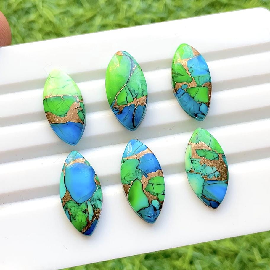NEW Green Oyster Copper Turquoise 20x10 MM Marquise Shape Calibrated Smooth Cabochon With Flat Back Gemstone 6 Pieces Lot For Jewelry
