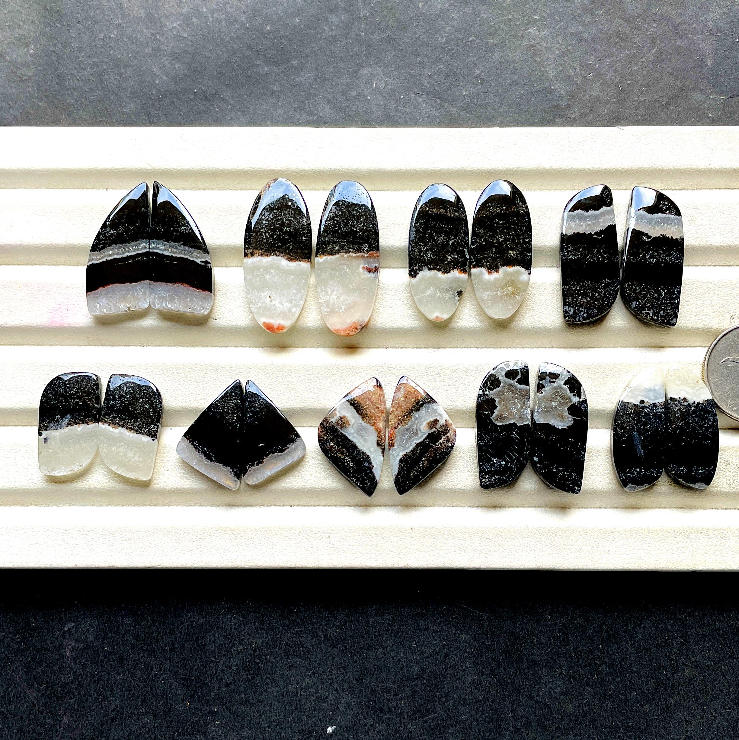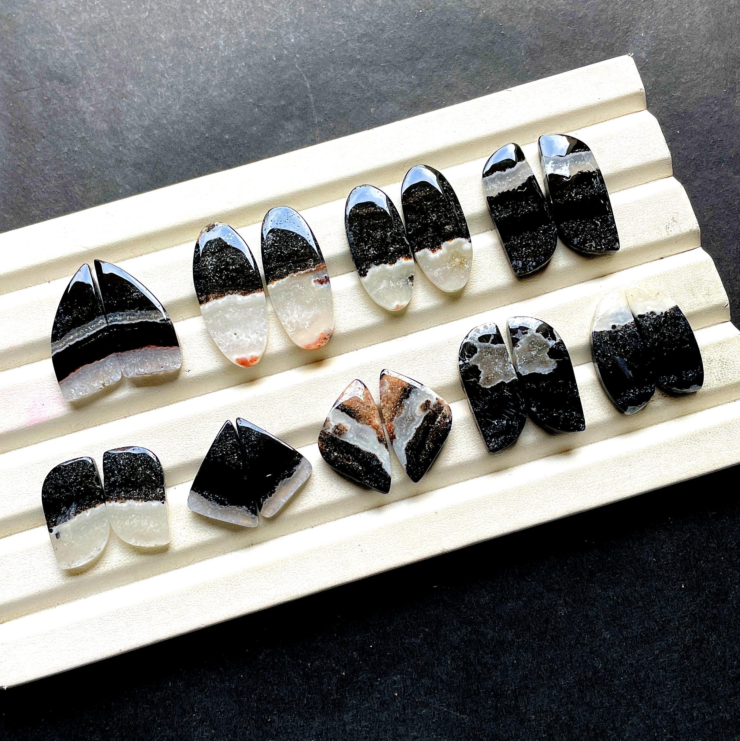 NEW Zebra Calcite Pair Cabochon Gemstone For Handmade Jewelry, AAA+ Natural Zebra Calcite Gemstone Matching Pairs For Earrings