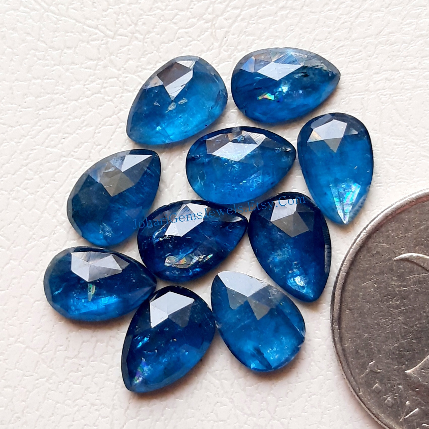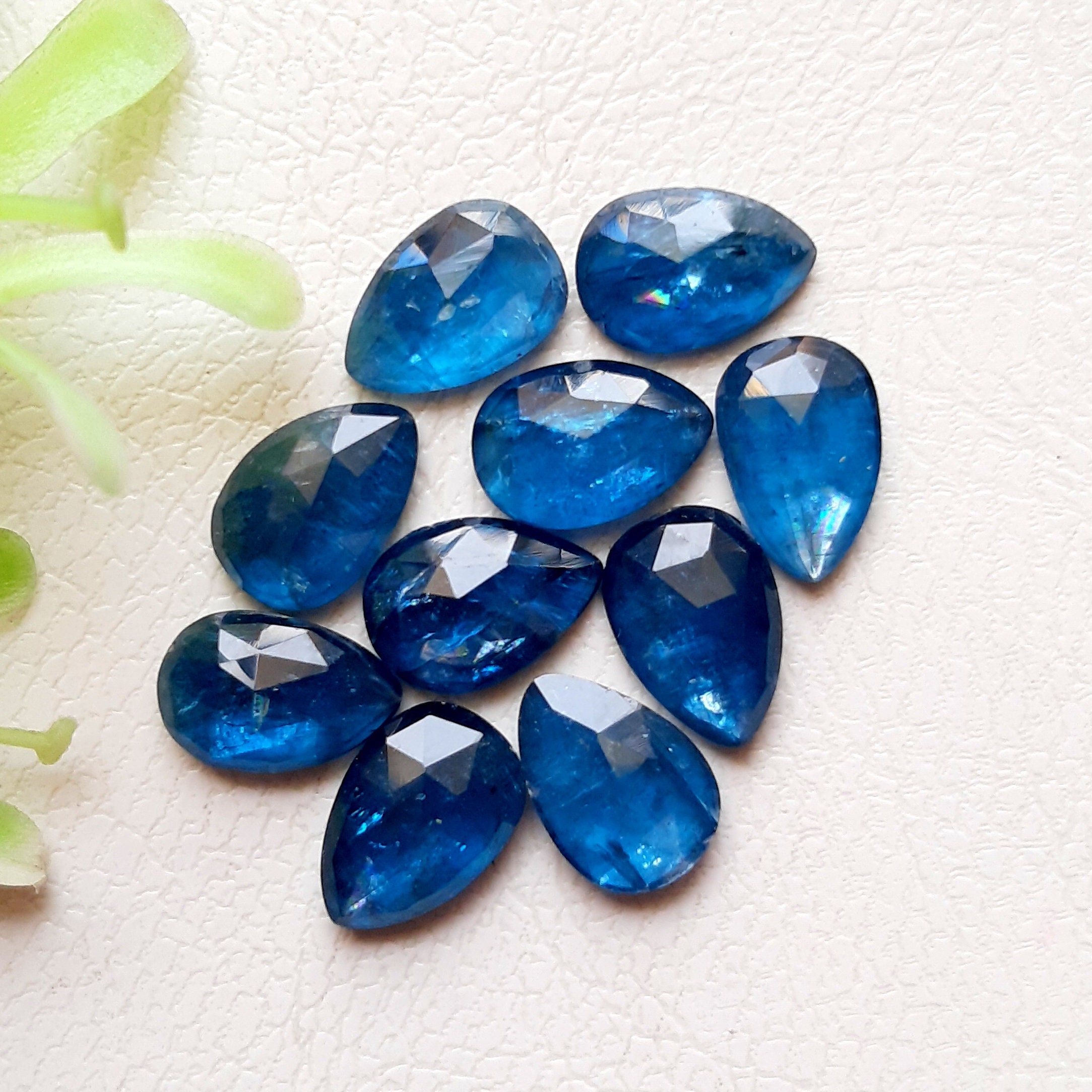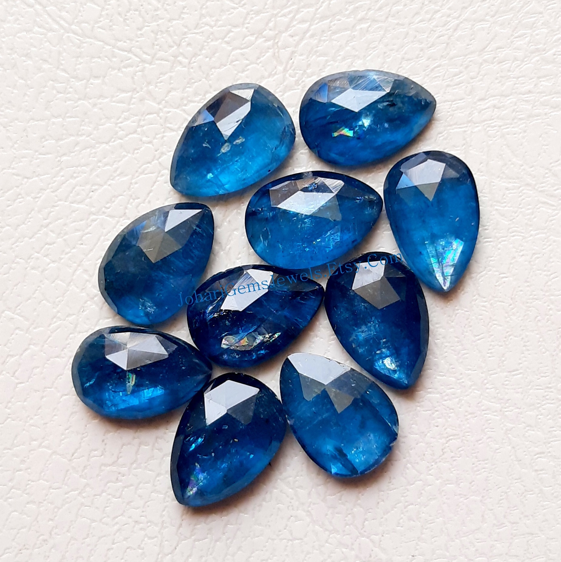 Neon Kyanite Rosecut Pear Gemstone 10 Pieces Lot, AAA+ Natural Neon Kyanite With Flat Back For Handmade Jewelry
