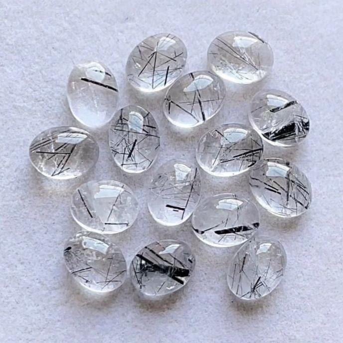 15 Pieces AAA+ Natural Black Rutile Quartz Cabochon Calibrated Gemstone Lot With Flat Back For Handmade Jewelry