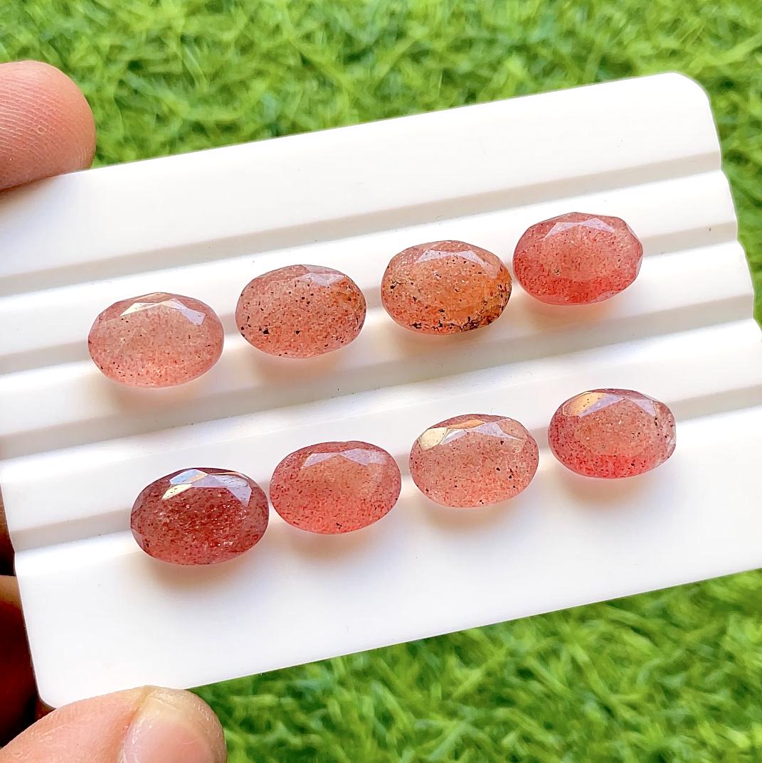 Natural Strawberry Quartz 10x14 MM Faceted Oval Shape With Pointed Back Gemstone 6 Pieces Lot For Jewelry Making