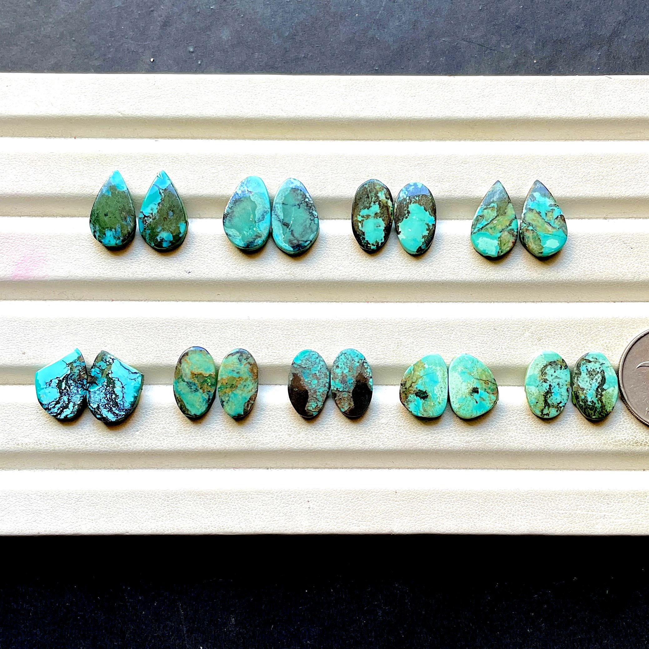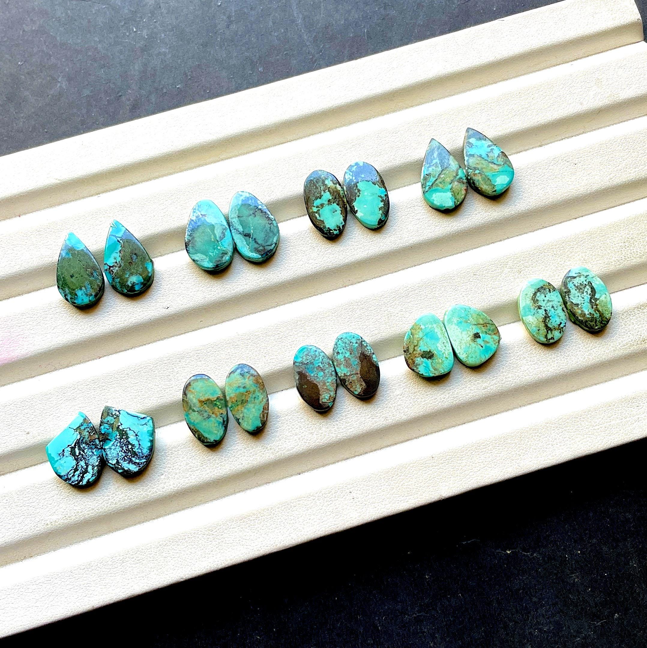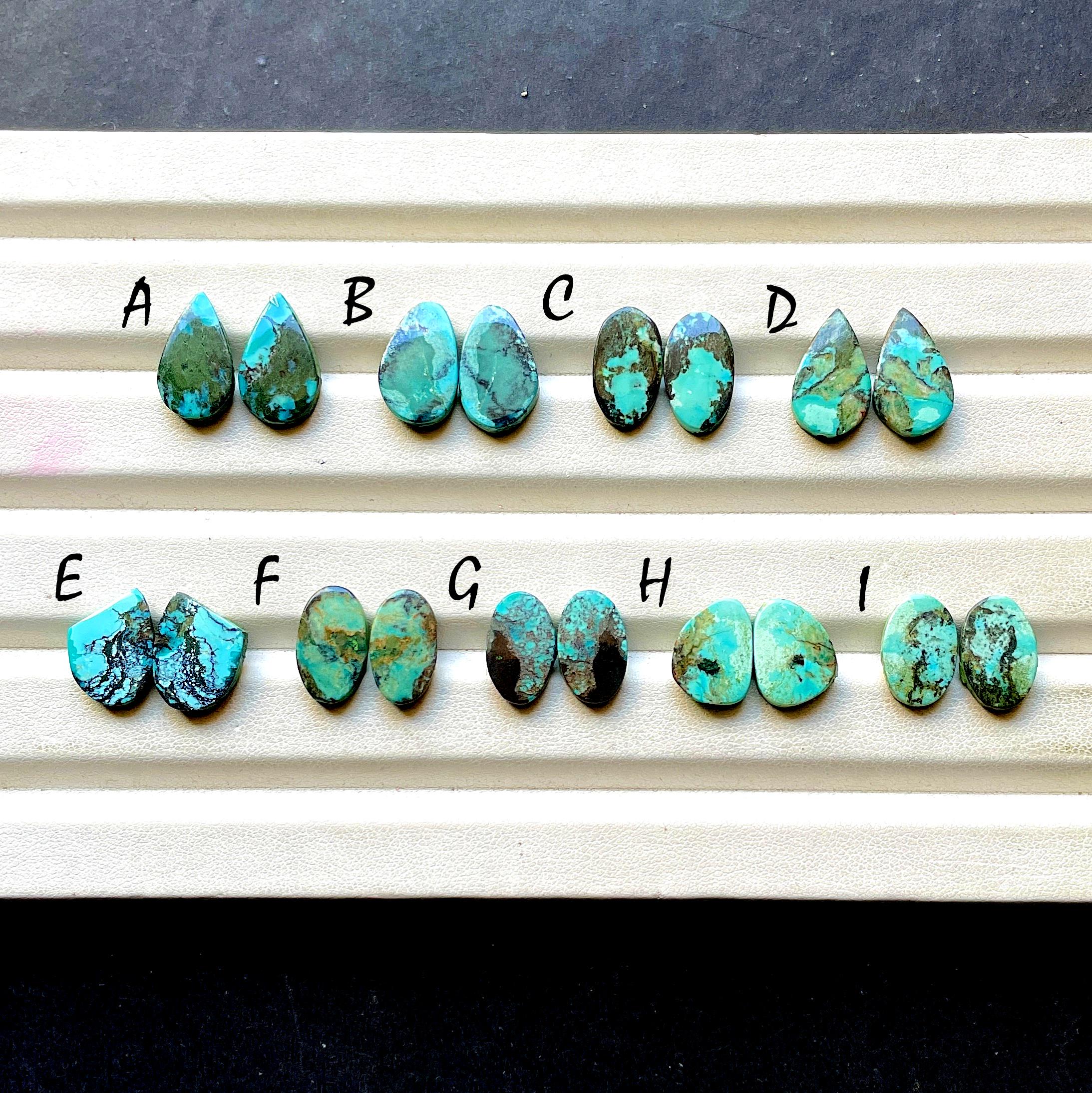 Natural Tibetan Turquoise Matching Pair Cabochon Loose Gemstone For Jewelry Making, AAA+ Natural Tibetan Turquoise Pair Cabochon For Earrings