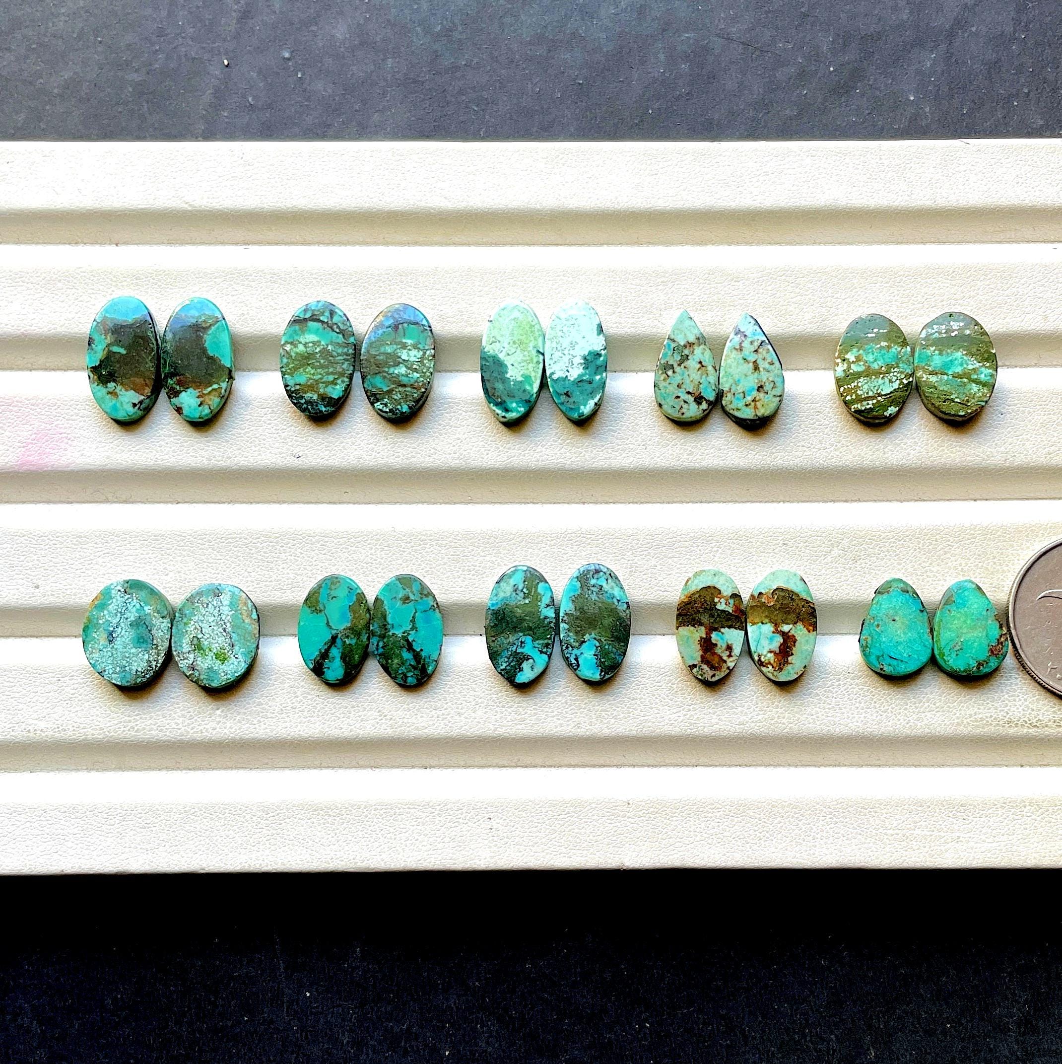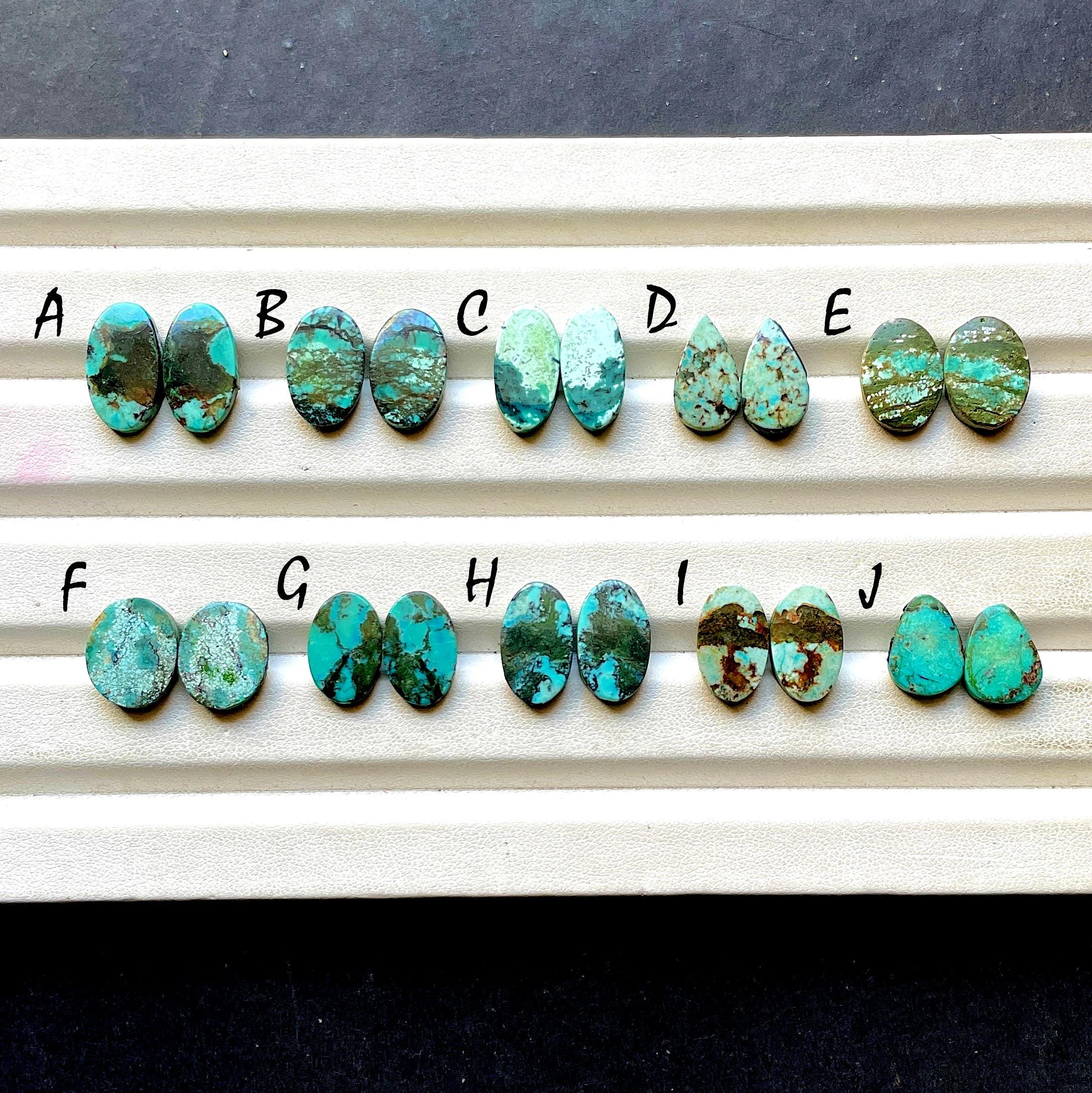 Natural Tibetan Turquoise Matching Pair Cabochon Loose Gemstone For Jewelry Making, AAA+ Natural Tibetan Turquoise Pair Cabochon For Earrings
