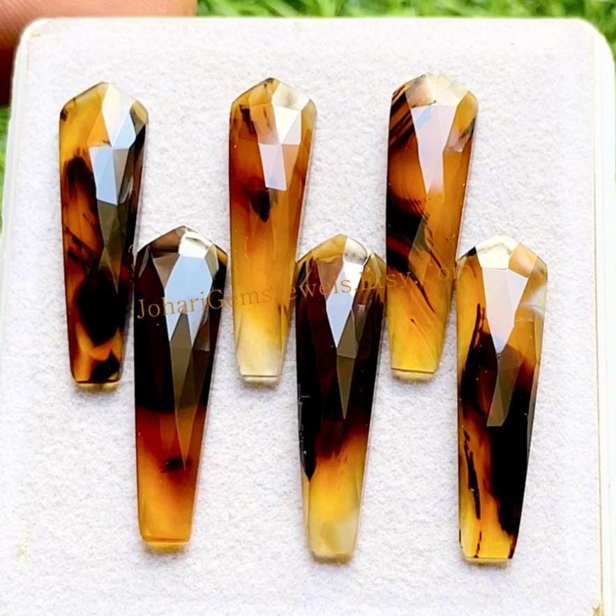 Natural Montana Agate 8X30 MM Rose Cut Fancy Kite Shape Gemstone With Flat Back 6 Pieces Lot, AAA+ Natural Montana Agate Gemstone For Jewelry Making
