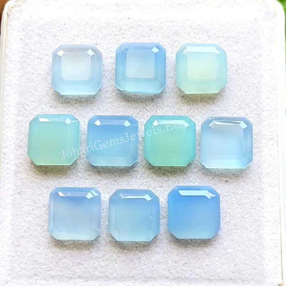 NATURAL Sky Blue Chalcedony Fancy Cut Cushion Shape With Flat Back Gemstone 10 Pieces Lot, AAA+ Natural Chalcedony Used For Jewelry Making