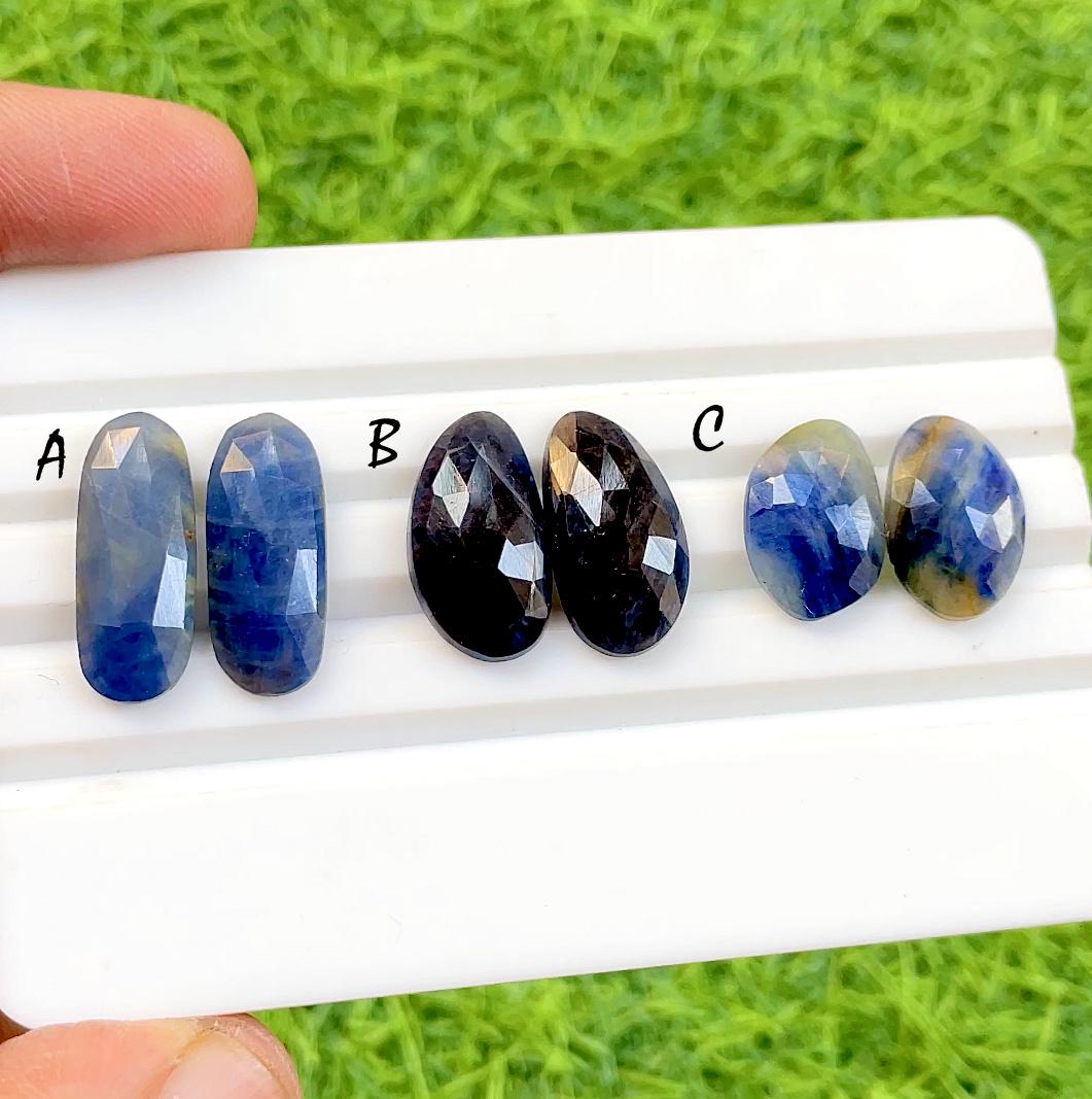 Natural Blue Sapphire Pair Rose Cut Loose Gemstone With Flat Back For Jewelry Making, AAA+ Blue Sapphire Pairs For Earrings