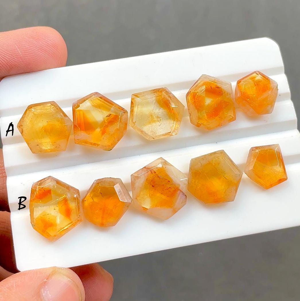 Natural Citrine Fancy Cut Slice Loose Gemstone 5 Pieces Lot With Flat Back For Jewelry Making, AAA+ Natural Citrine For Jewelry