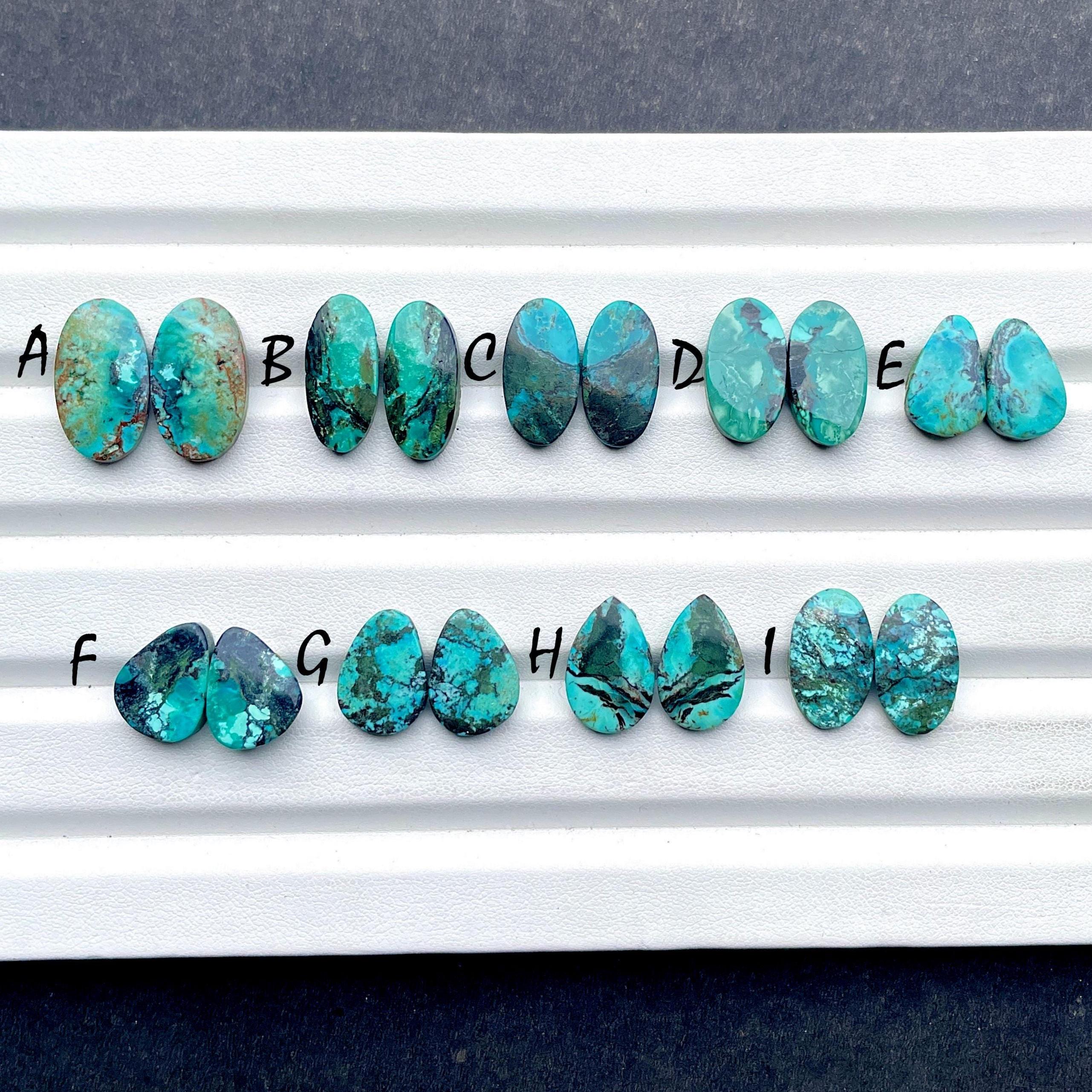 Natural Tibetan Turquoise Matching Pair Cabochon Loose Gemstone For Jewelry Making, AAA+ Natural Tibetan Turquoise Pair Cabochon For Earrings