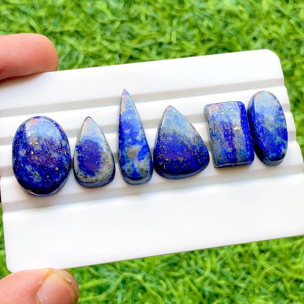 Lapis Lazuli Cabochon 6 Pieces Loose Gemstone Lot, AAA+ Natural Lapis Lazuli Cabochon For Handmade Jewelry