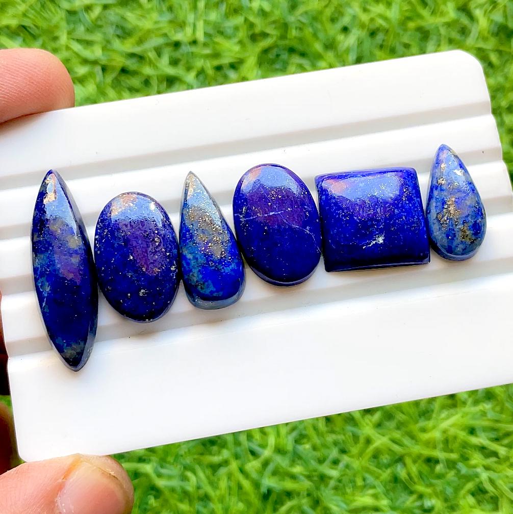 Lapis Lazuli Cabochon 6 Pieces Loose Gemstone Lot, AAA+ Natural Lapis Lazuli Cabochon For Handmade Jewelry