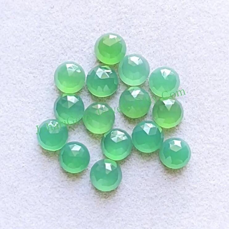 Green Chalcedony 6 MM Round Shape Rose Cut Gemstone 15 Pieces Lot, AAA+ Natural Chalcedony With Flat Back For Jewelry Making