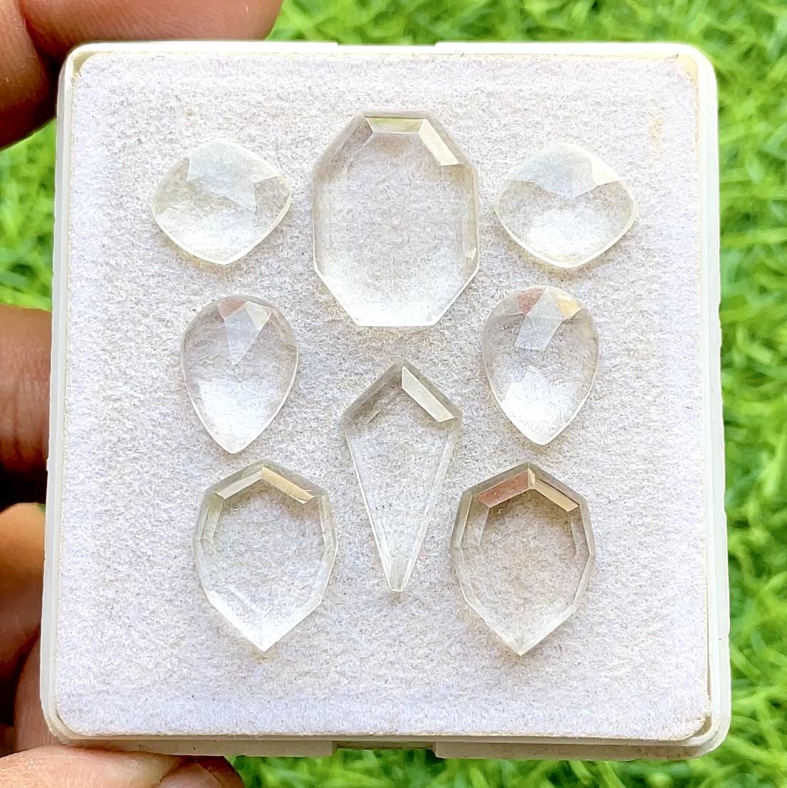 NATURAL Clear Quartz Fancy Cut Mix Shape With Flat Back Gemstone 8 Pieces Lot, Natural Clear Quartz Used For Jewelry Making