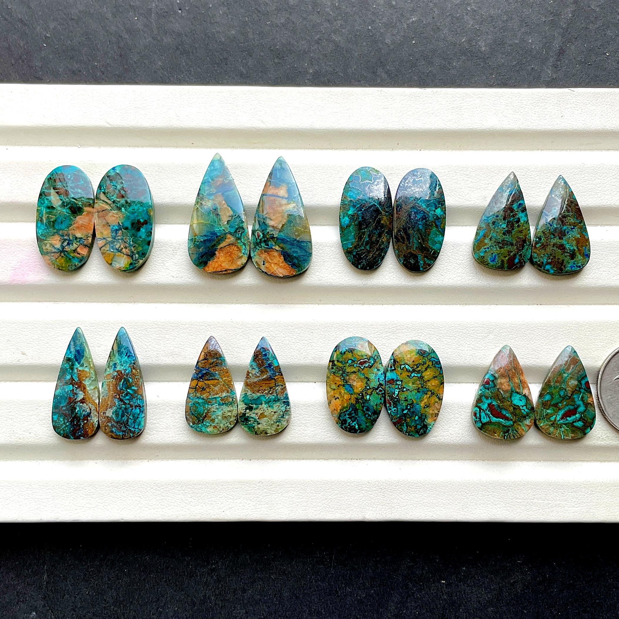 NEW Chrysocolla Pair Cabochon Loose Gemstone For Jewelry Making, AAA+ Natural Chrysocolla Matching Pair Cabochon For Earrings