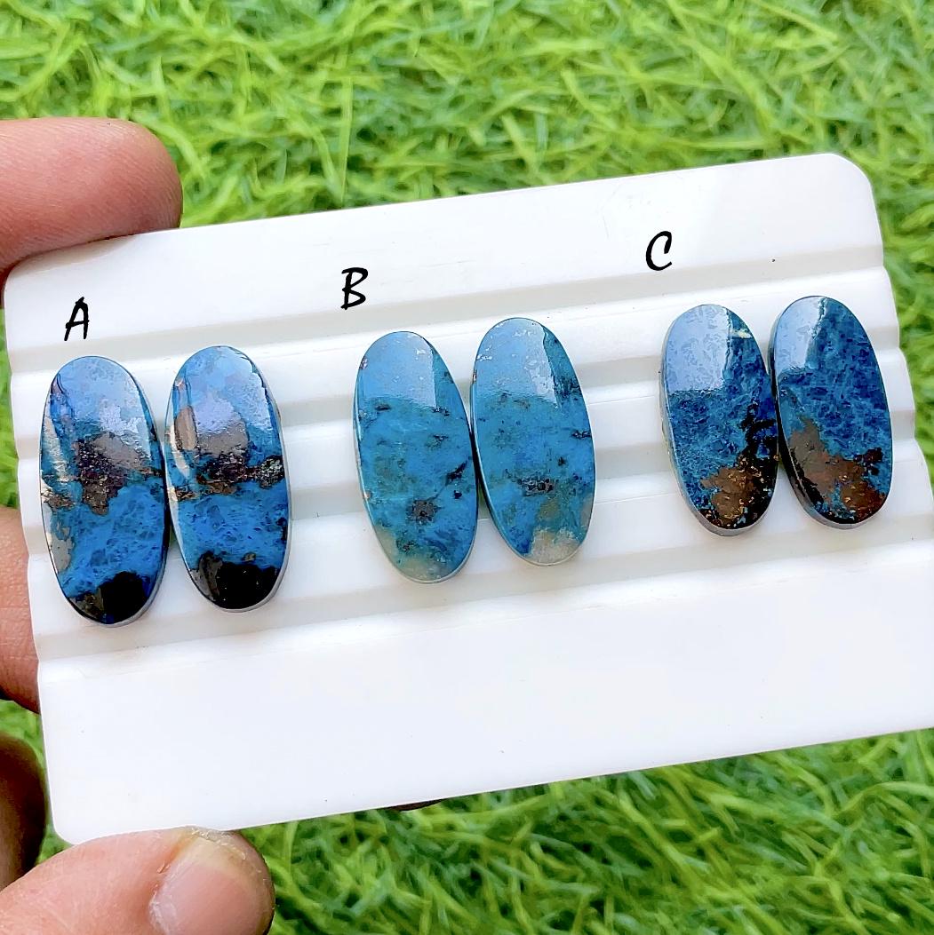 NEW Azurite Pair Cabochon Loose Gemstone For Jewelry Making, AAA+ Natural Azurite Matching Pair Cabochon For Earrings