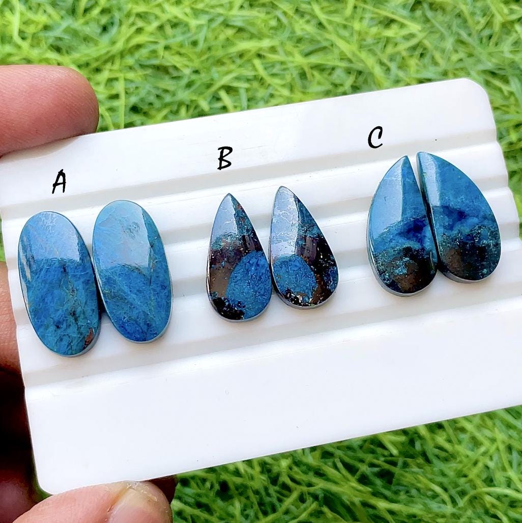 NEW Azurite Pair Cabochon Loose Gemstone For Jewelry Making, AAA+ Natural Azurite Matching Pair Cabochon For Earrings