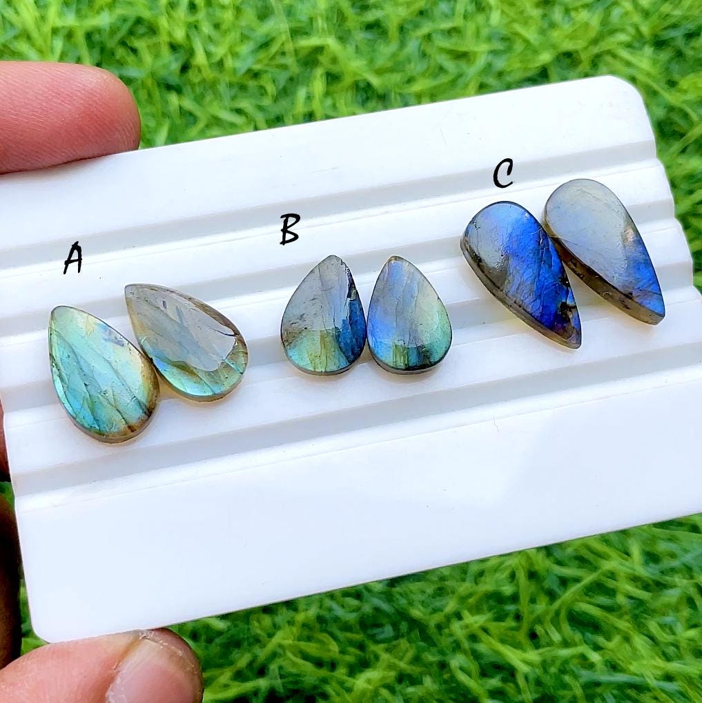 NEW Labradorite Pair Cabochon Loose Gemstone For Jewelry Making, AAA+ Natural Labradorite Matching Pair Cabochon For Earrings - 34556-34558