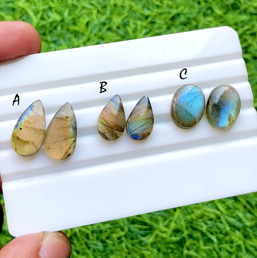 NEW Labradorite Pair Cabochon Loose Gemstone For Jewelry Making, AAA+ Natural Labradorite Matching Pair Cabochon For Earrings