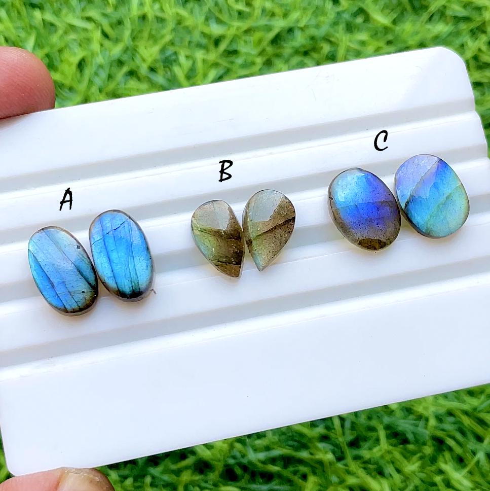 NEW Labradorite Pair Cabochon Loose Gemstone For Jewelry Making, AAA+ Natural Labradorite Matching Pair Cabochon For Earrings