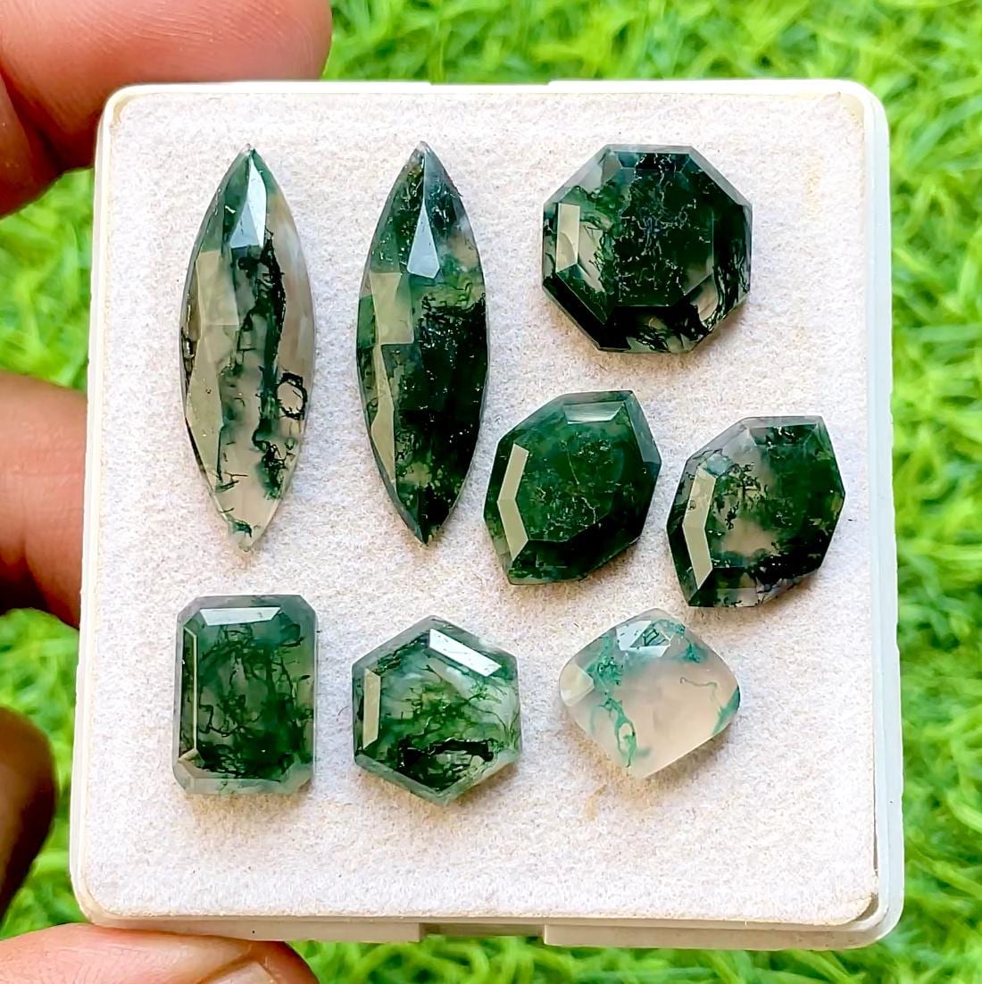 Natural Moss Agate Fancy Cut Mix Shape With Flat Back Gemstone 8 Pieces Lot For Jewelry Making
