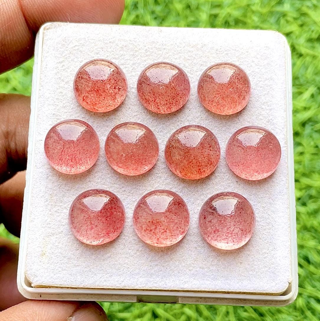 Pink Strawberry Quartz 12 MM Round Shape Smooth Cabochon Gemstone 10 Pieces Lot With Flat Back For Handmade Jewelry