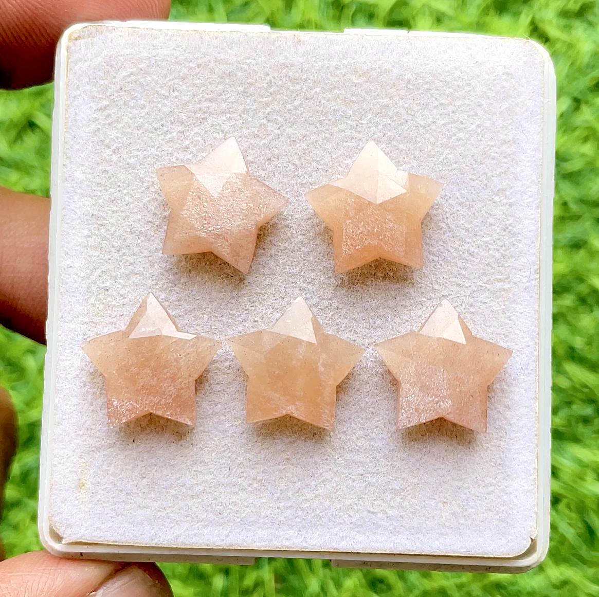 Peach Moonstone 15 MM Rose Cut Briolette Star Shape Gemstone 5 Pieces Lot For Handmade Jewelry, AAA+ Peach Moonstone Star Shape For Jewelry