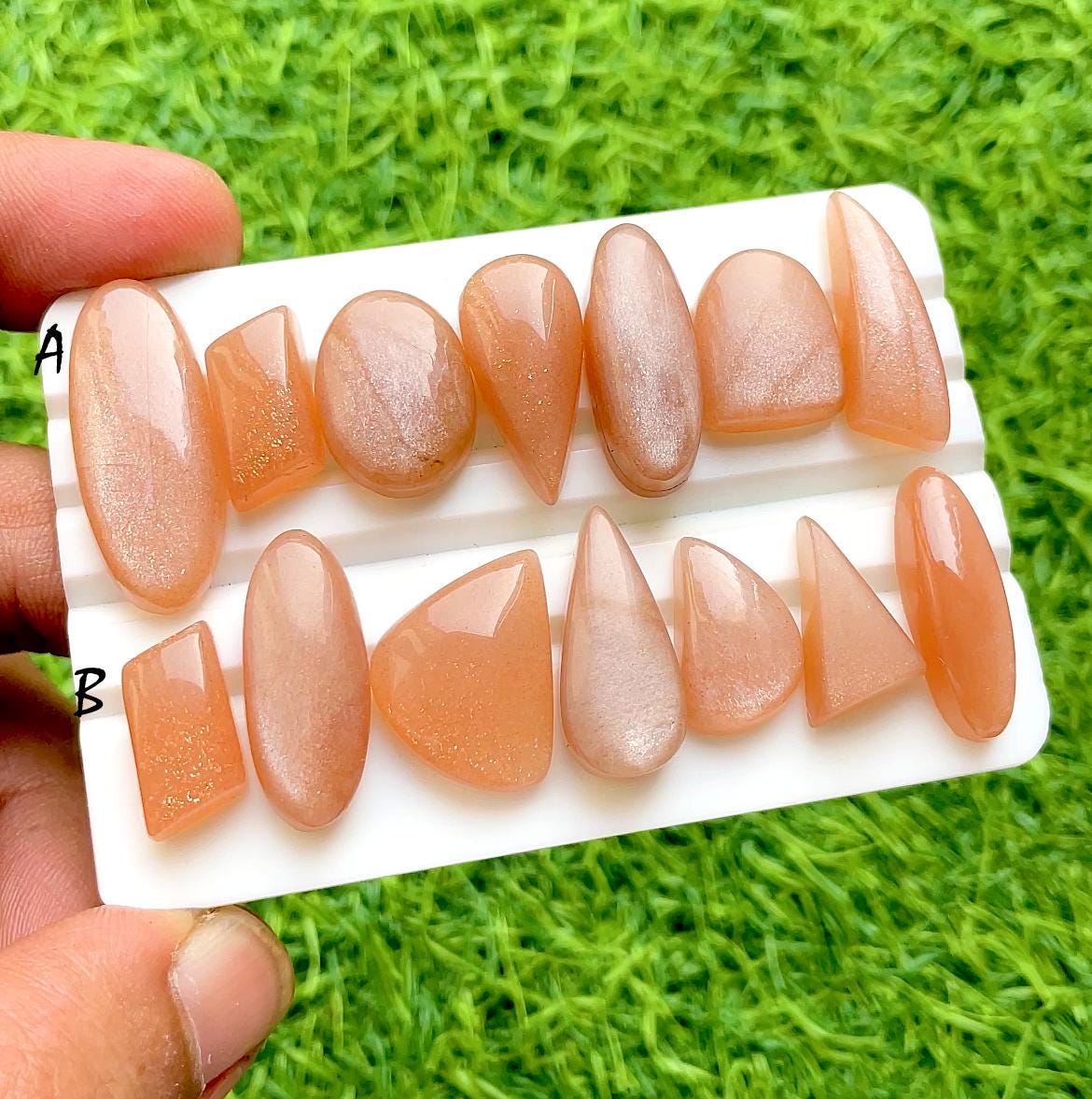 Peach Moonstone Cabochon Loose Gemstone 7 Pieces Lot For Jewelry Making, AAA+ Natural Peach Moonstone Cabochon For Handmade Jewelry