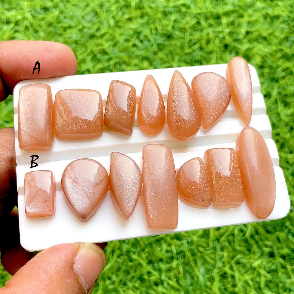 Peach Moonstone Cabochon Loose Gemstone 7 Pieces Lot For Jewelry Making, AAA+ Natural Peach Moonstone Cabochon For Handmade Jewelry