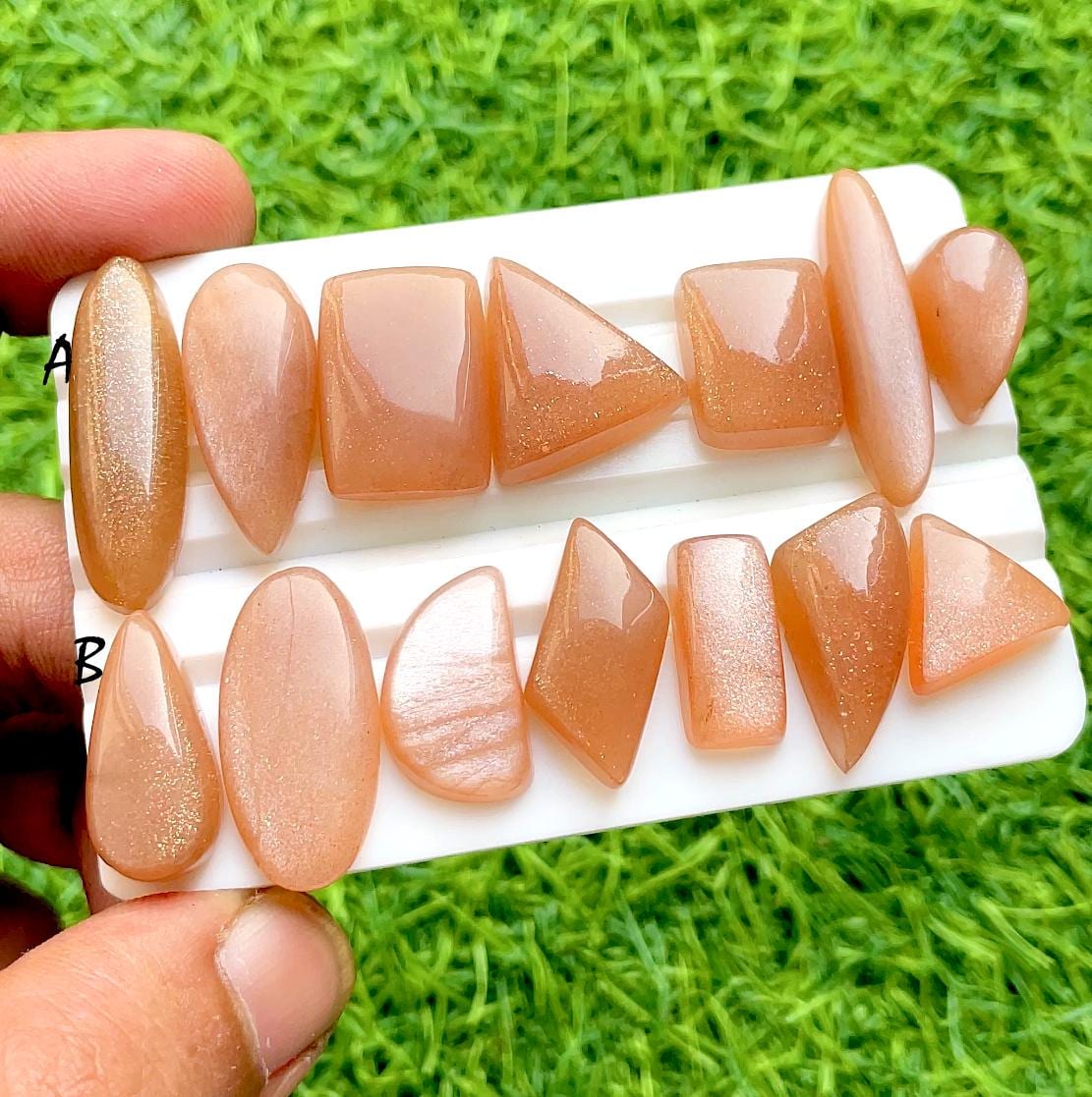 Peach Moonstone Cabochon Loose Gemstone 7 Pieces Lot For Jewelry Making, AAA+ Natural Peach Moonstone Cabochon For Handmade Jewelry
