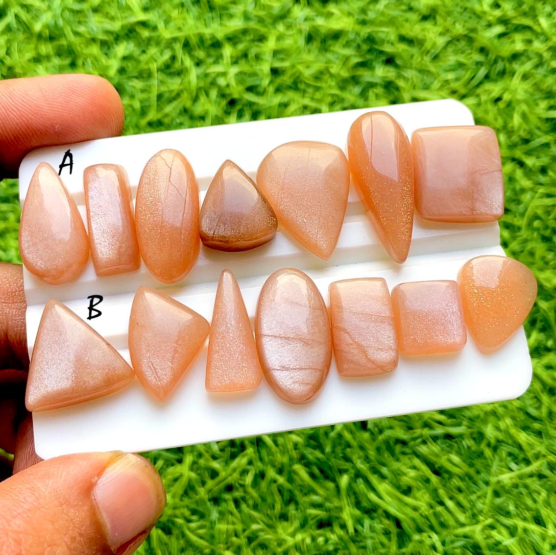 Peach Moonstone Cabochon Loose Gemstone 7 Pieces Lot For Jewelry Making, AAA+ Natural Peach Moonstone Cabochon For Handmade Jewelry