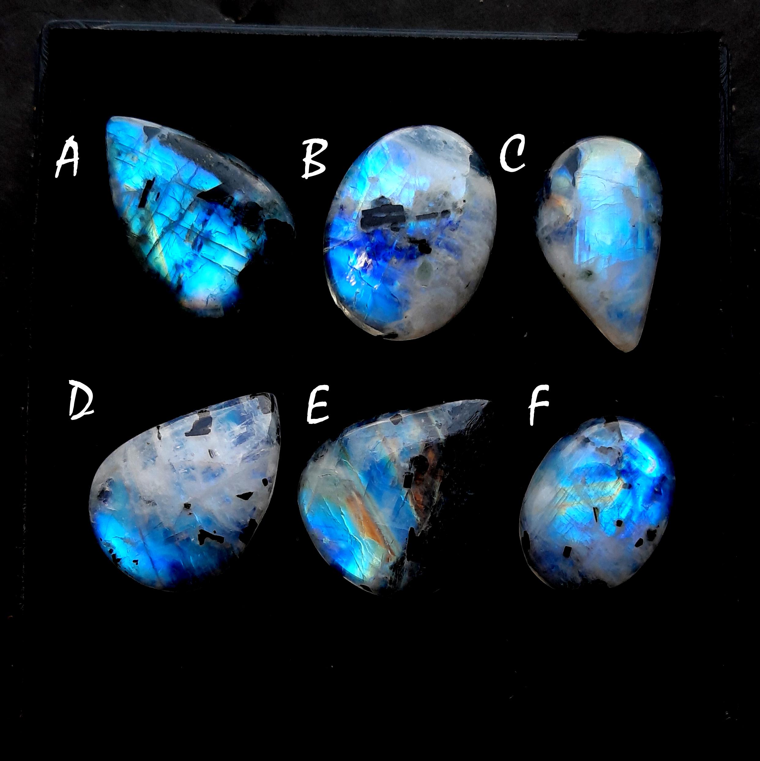 Rainbow Moonstone Cabochon With Black Tourmaline Dot For Jewelry Making, AAA+ Natural Rainbow Moonstone Cabochon For Wire Wrap