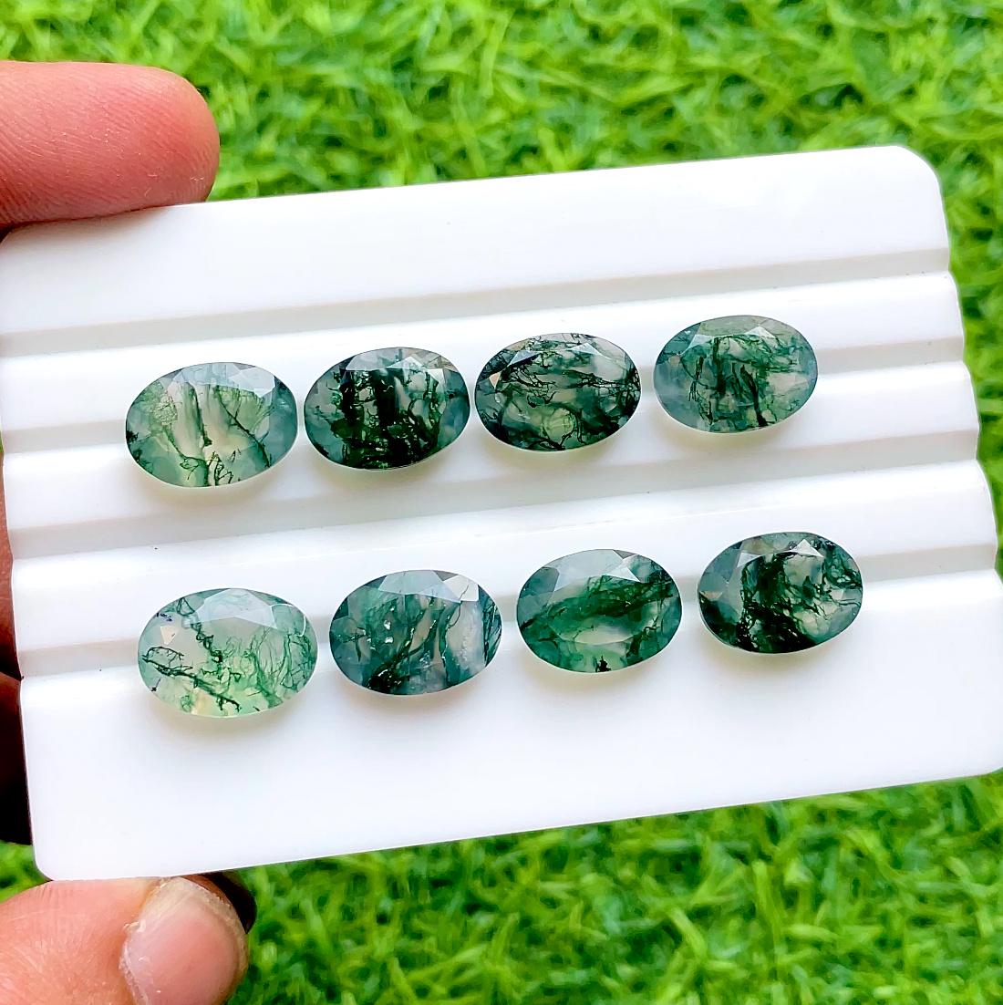 NATURAL Moss Agate 10x14 MM Faceted Oval Shape With Pointed Back Gemstone 8 Pieces Lot For Jewelry Making, AAA+ Moss Agate For Handmade Jewelry