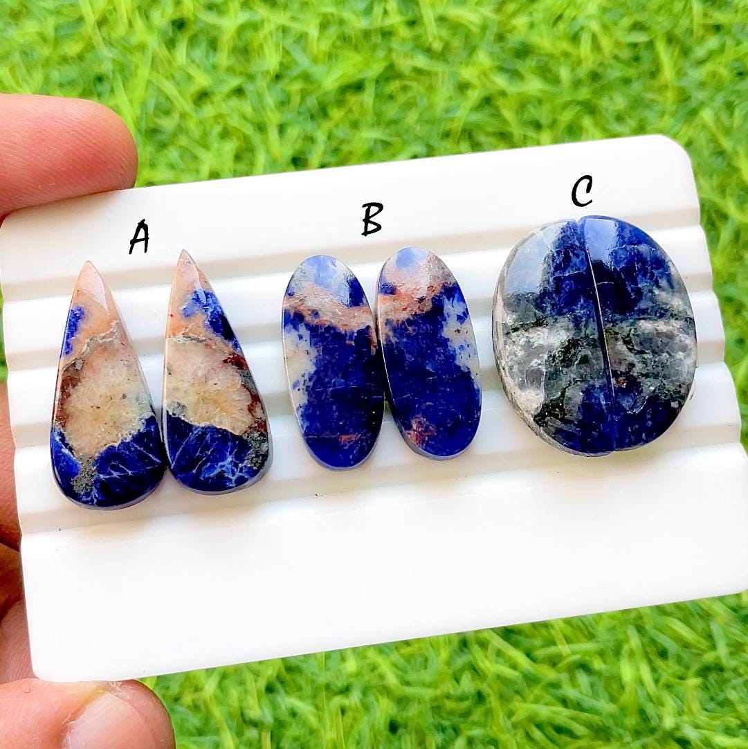 NEW Sodalite Pair Cabochon Loose Gemstone For Jewelry Making , AAA+ Natural Sodalite Matching Pair Gemstone For Earrings