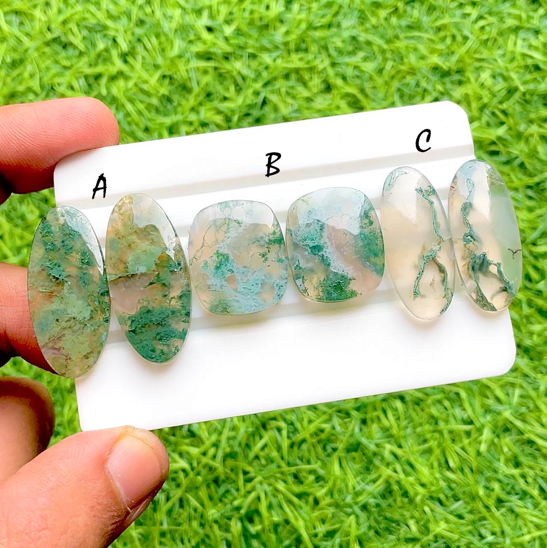 Natural Moss Agate Pair Cabochon Loose Gemstone For Jewelry Making, AAA+ Natural Moss Agate Matching Pair Gemstone For Wire Wrap