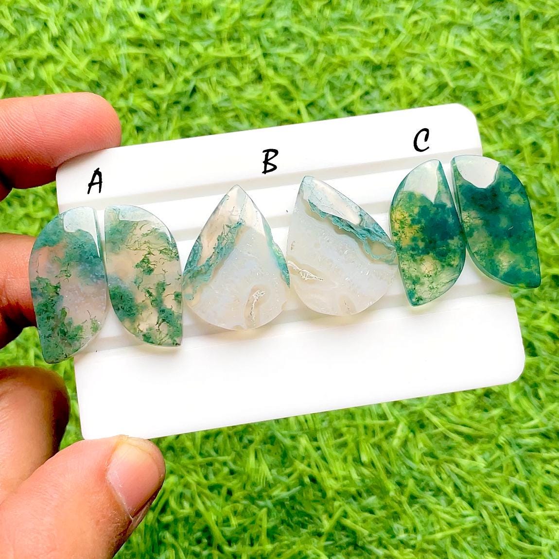 Moss Agate Pair Cabochon Loose Gemstone For Jewelry Making, AAA+ Natural Moss Agate Matching Pair Gemstone For Wire Wrap - 35067-35069