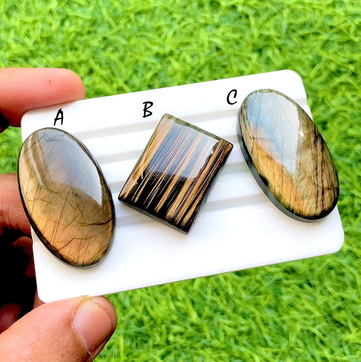Golden Ember Labradorite Cabochon Loose Gemstone For Jewelry Making, AAA+ Natural Natural Smoky Bronze Flash Labradorite