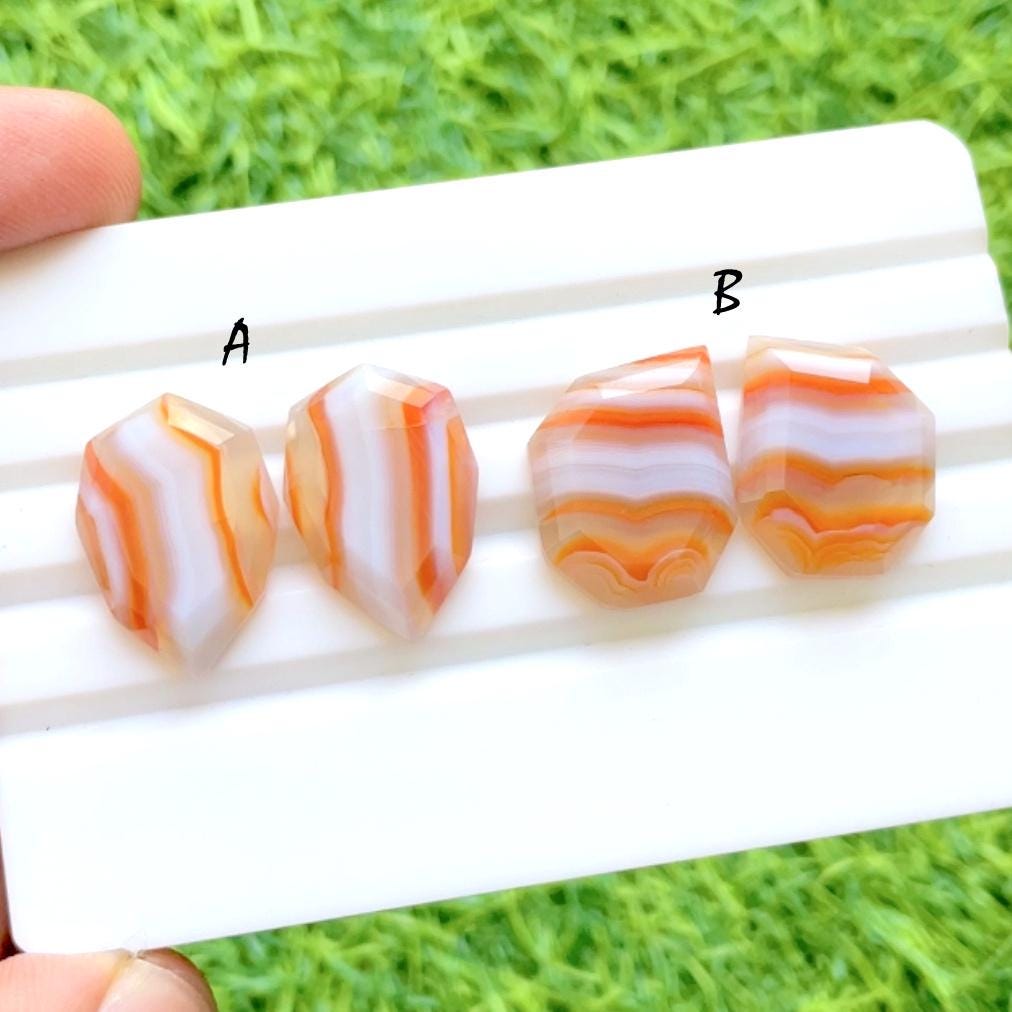 Sunset Flame Carnelian Agate Fancy Cut Perfect Matching Pair For Earrings, AAA+ Natural Banded Orange Agate Pair Gemstone