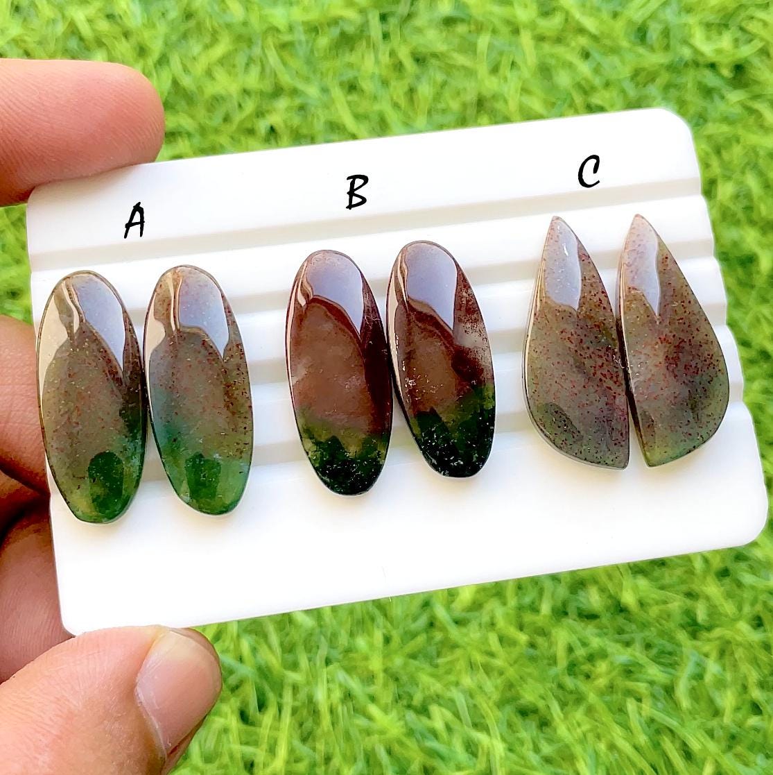 Forest Fire Agate Cabochon Matching Pairs For Earrings, AAA+ Natural Moss Agate Designer Shapes Cabochon For Jewelry Making