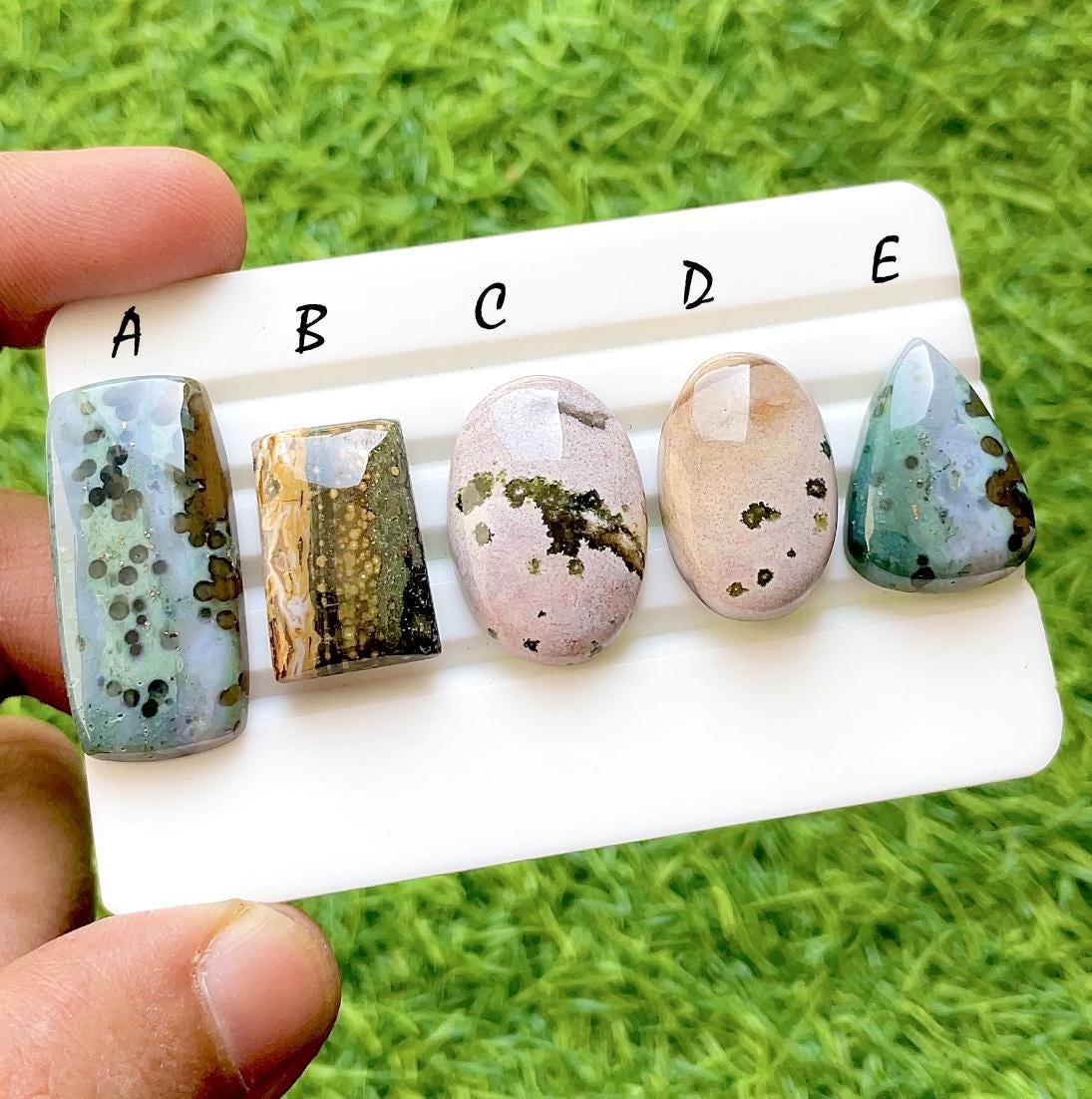Wild Reef Ocean Jasper Cabochon Set, Rare Floral Pattern Ocean Jasper, Designer Jewelry Making Stones, Collector Gem Lot
