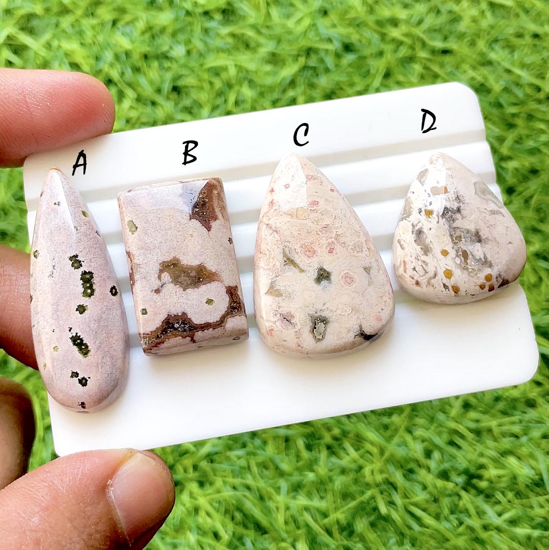 Pastel Tide Ocean Jasper Cabochon Set, Rare Floral Pattern Ocean Jasper, Designer Jewelry Making Stones, Collector Gem Lot