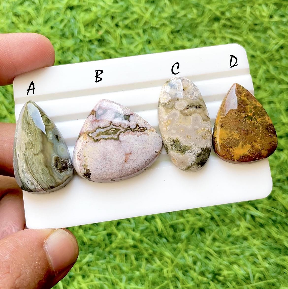 Pastel Tide Ocean Jasper Cabochon Set, Rare Floral Pattern Ocean Jasper, Designer Jewelry Making Stones, Collector Gem Lot