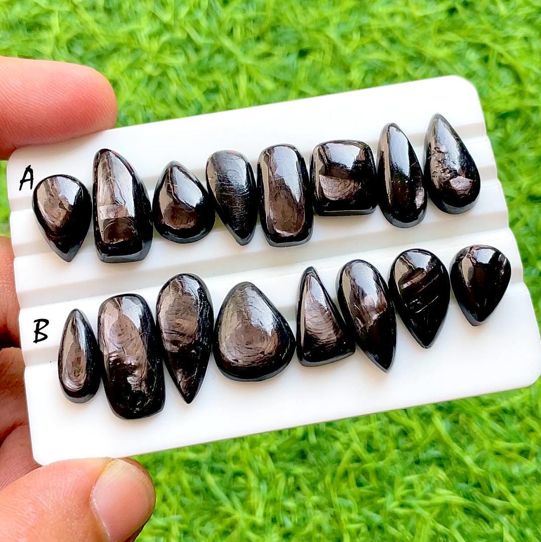 Galaxy Sheen Hypersthene Cabochon Set, AAA+ Natural Hypersthene Freeform Cabochons, Dark Flashy Gemstone for Jewelry Making