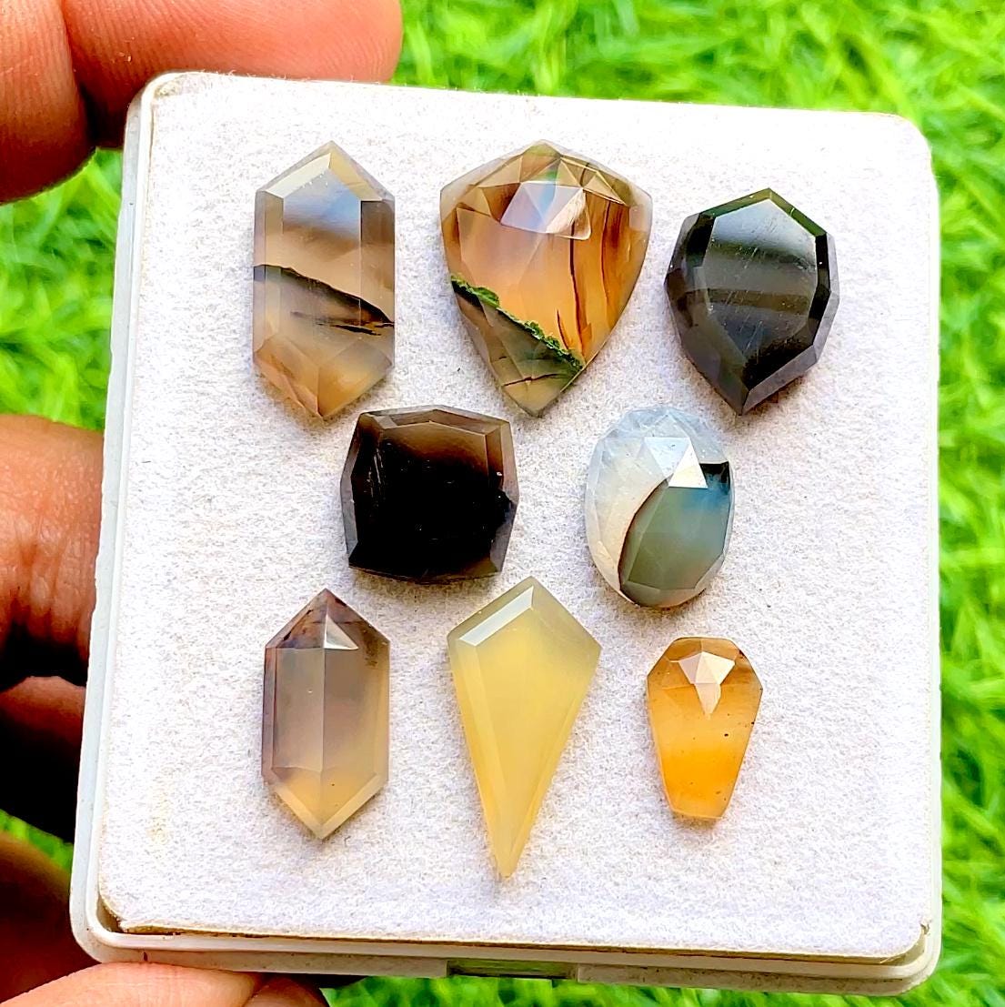 Montana Agate Fancy Cut Mix Shape With Flat Back Gemstone 8 Pieces Lot For Jewelry Making, AAA+ Montana Agate Used For Jewelry Making