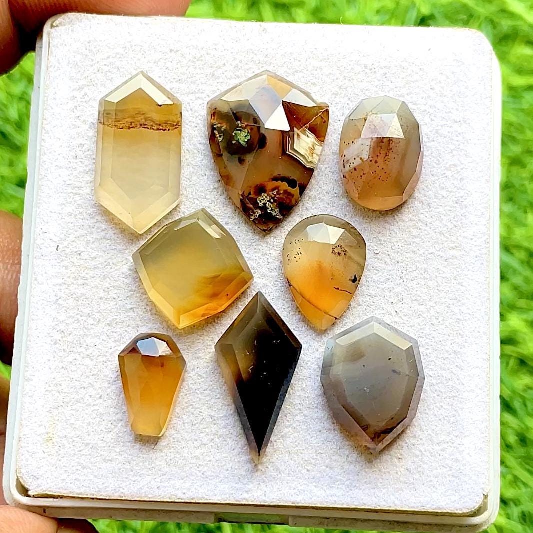 Montana Agate Fancy Cut Mix Shape With Flat Back Gemstone 8 Pieces Lot For Jewelry Making, AAA+ Montana Agate Used For Jewelry Making