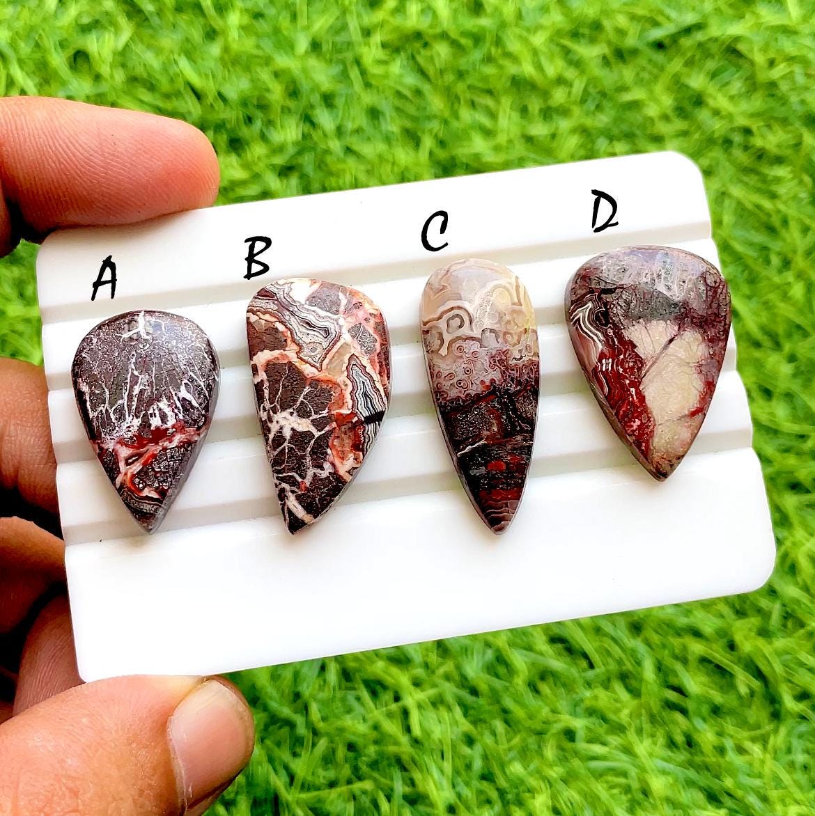 Lava Vein Crazy Lace Agate Cabochon Set For Wire Wrap, AAA+ Natural Blood Vein Pattern Gemstone, Jewelry Making Supply