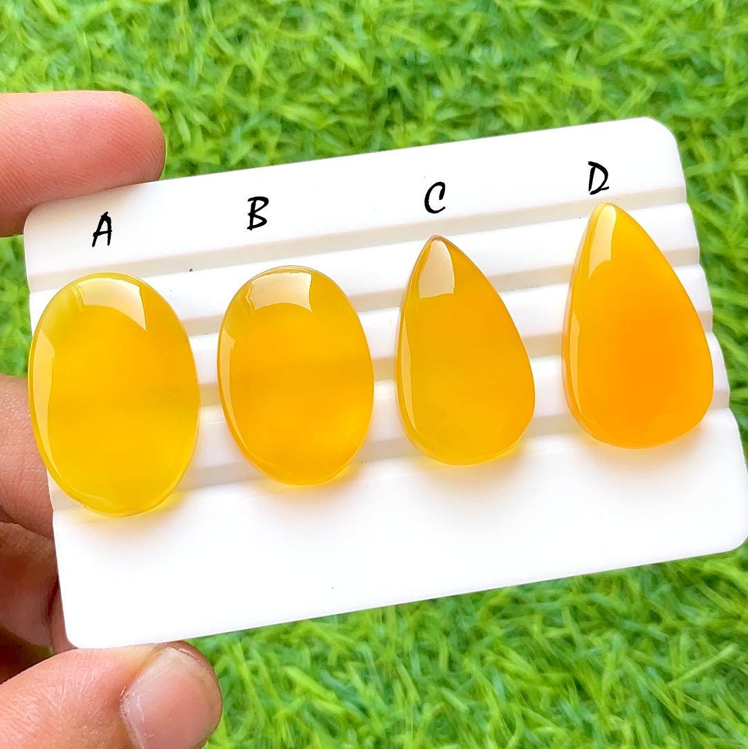 Golden Honey Flame Chalcedony Cabochon For Wire Wrap, Bright Yellow Agate Cabochon, Jewelry Making Gemstone, Loose Cabochon Lot