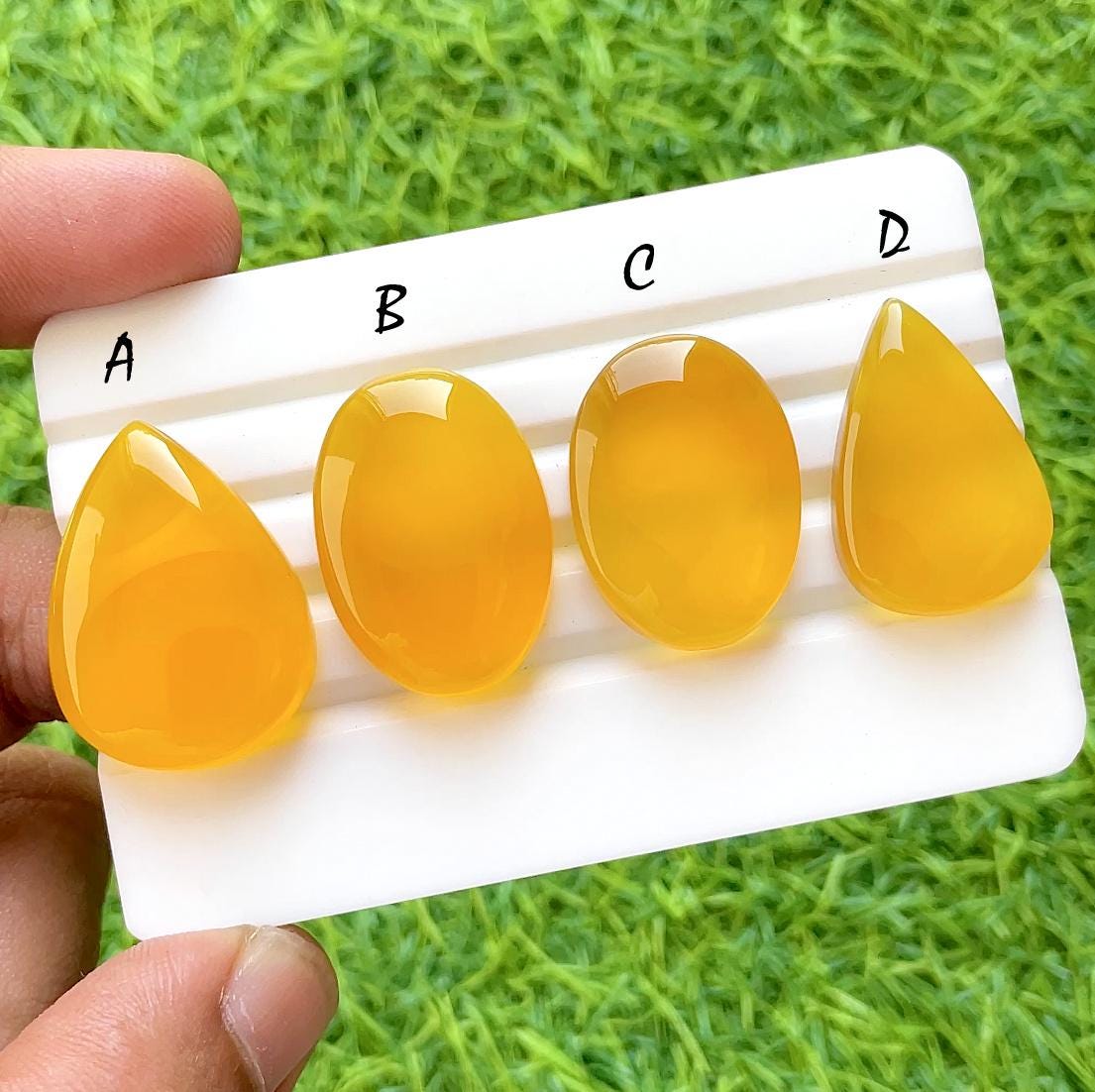 Golden Honey Flame Chalcedony Cabochon For Wire Wrap, Bright Yellow Agate Cabochon, Jewelry Making Gemstone, Loose Cabochon Lot