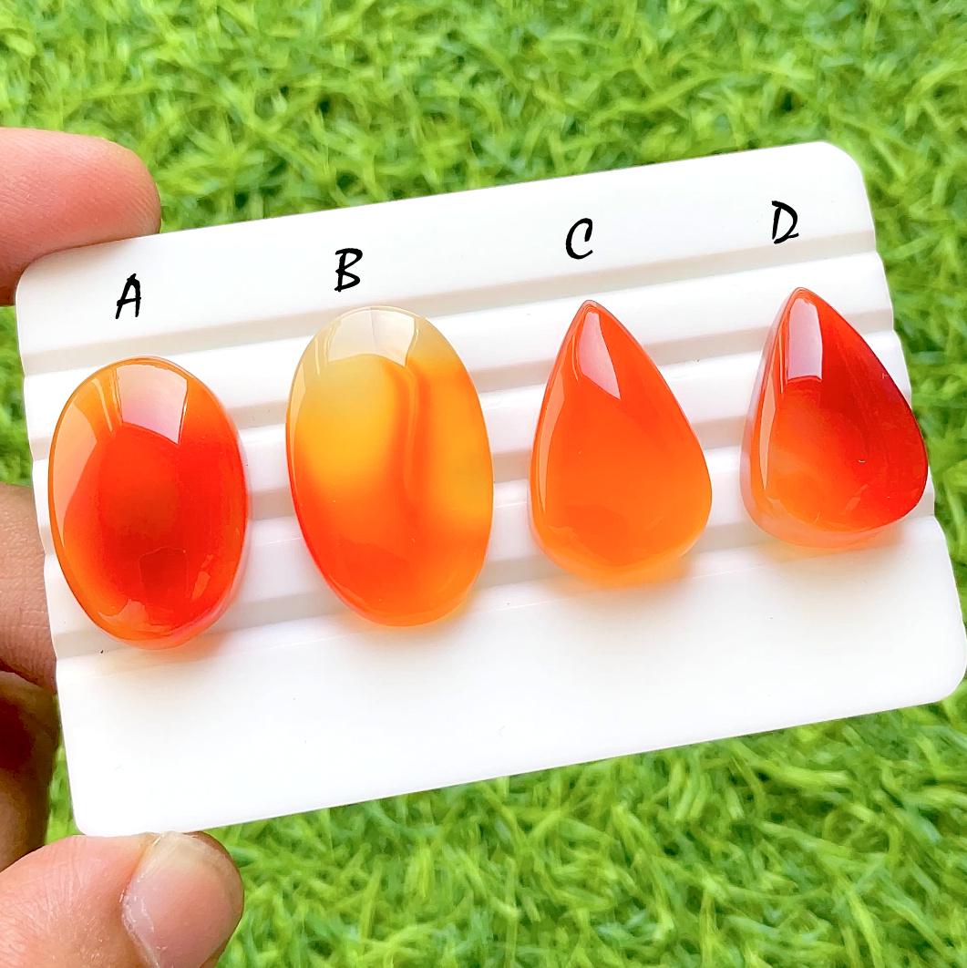 Sunset Fire Carnelian Chalcedony Cabochon Set – Bright Orange Pear & Oval Cabochons – Smooth Polished Loose Gemstones for Jewelry Making