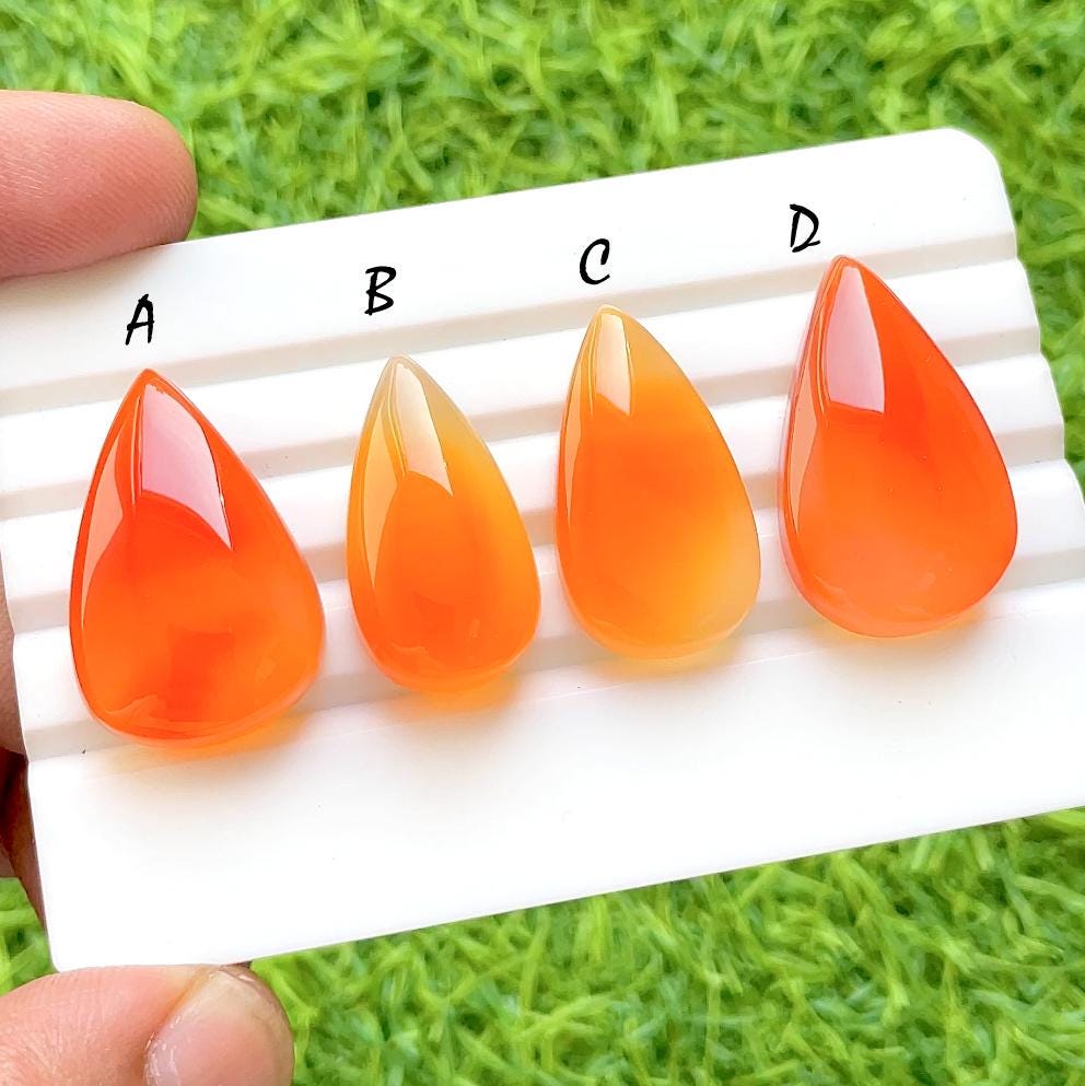Sunset Fire Carnelian Chalcedony Cabochon Set – Bright Orange Pear & Oval Cabochons – Smooth Polished Loose Gemstones for Jewelry Making