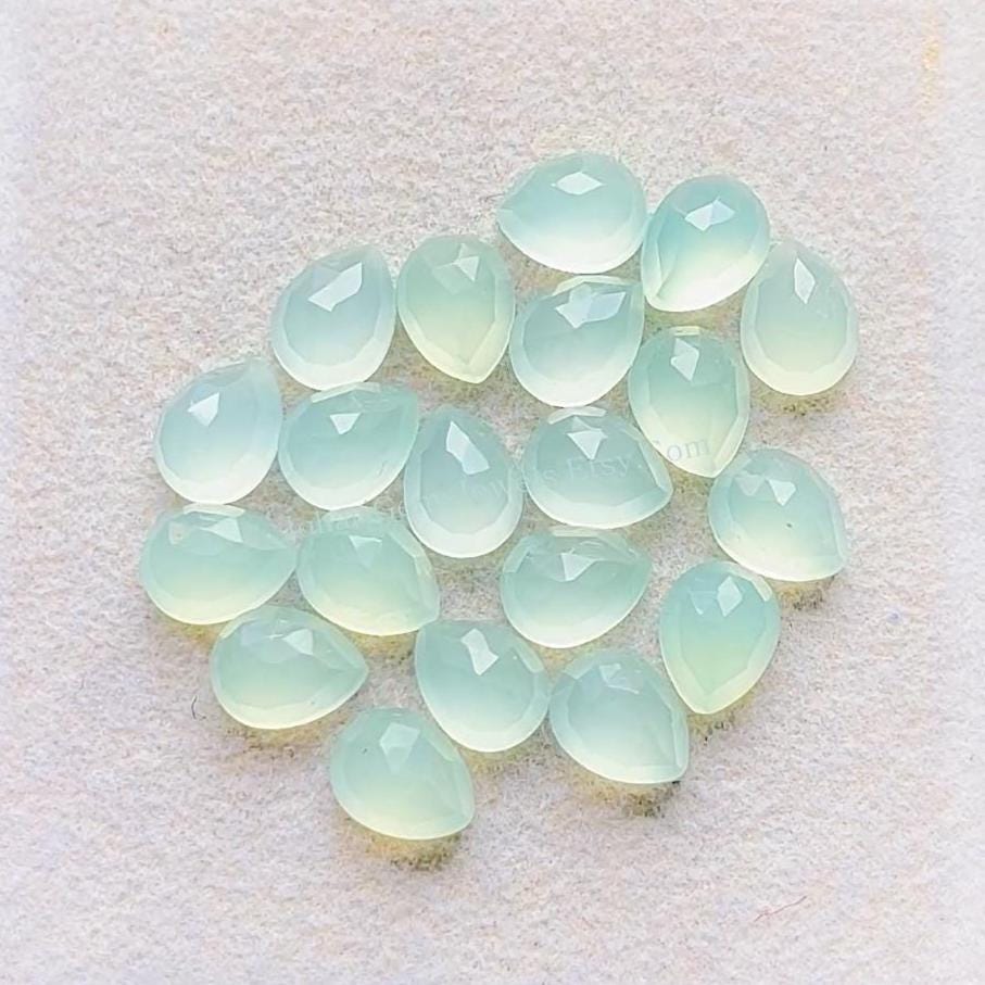 Aqua Color Chalcedony 6X8 MM Rose Cut Pear Shape Gemstone 15 Pieces Lot, AAA+ Natural Chalcedony With Flat Back For Jewelry Making